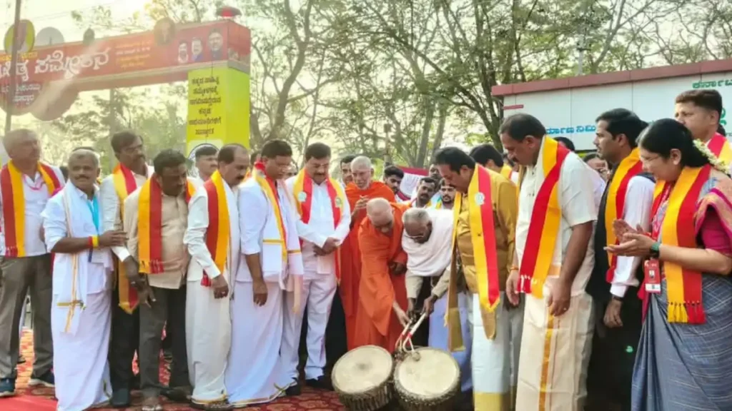 ಮಂಡ್ಯ: ೮೭ನೇ ಅಖಿಲ ಭಾರತ ಕನ್ನಡ ಸಾಹಿತ್ಯ ಸಮ್ಮೇಳನದ (Kannada sahitya sammelana) ಸಮ್ಮೇಳನಾಧ್ಯಕ್ಷರಾದ ಡಾ.ಗೊ.ರು.ಚನ್ನಬಸಪ್ಪ ಅವರ ಮೆರವಣಿಗೆಗೆ ಶ್ರೀ ಆದಿಚುಂಚನಗಿರಿ ಮಹಾಸಂಸ್ಥಾನ ಮಠದ ಪೀಠಾಧ್ಯಕ್ಷರಾದ ಶ್ರೀ ಡಾ.ನಿರ್ಮಲಾನಂದನಾಥ ಸ್ವಾಮೀಜಿರವರು ನಗಾರಿ ಬಾರಿಸುವ ಮೂಲಕ ಚಾಲನೆ ನೀಡಿದರು.