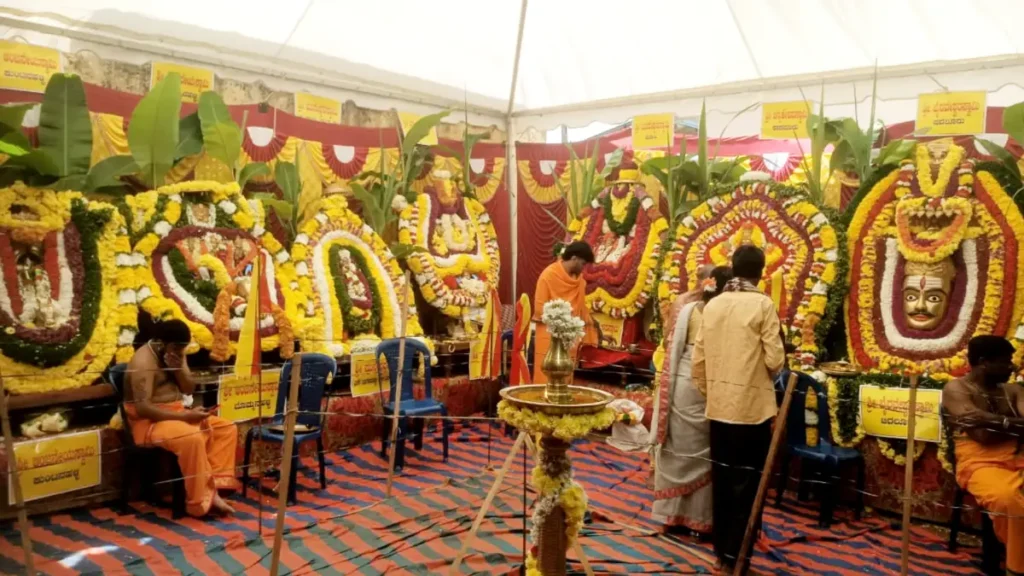 ಕಳಸಗಳನ್ನು ಹಿಡಿದ ನೂರಾರು ಮಹಿಳೆಯರು ಗ್ರಾಮದಲ್ಲಿ ಮೆರವಣಿಗೆ ಮೂಲಕ ಆಗಮಿಸಿ, ದೇವತಾ ಮೂರ್ತಿಗಳಿಗೆ ಪೂಜೆ ಸಲ್ಲಿಸಿದರು.